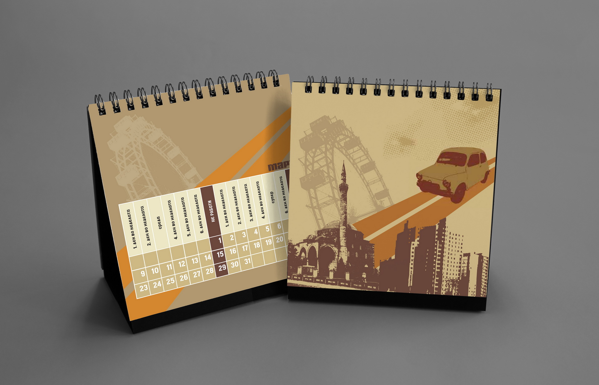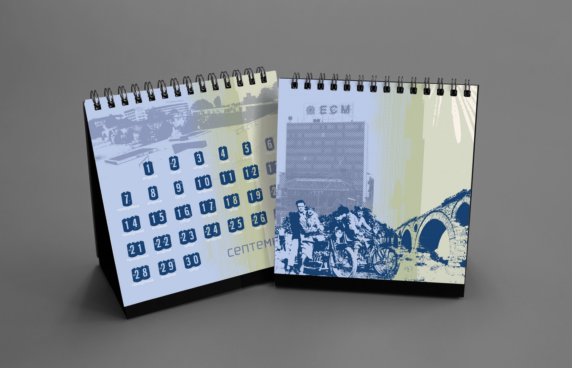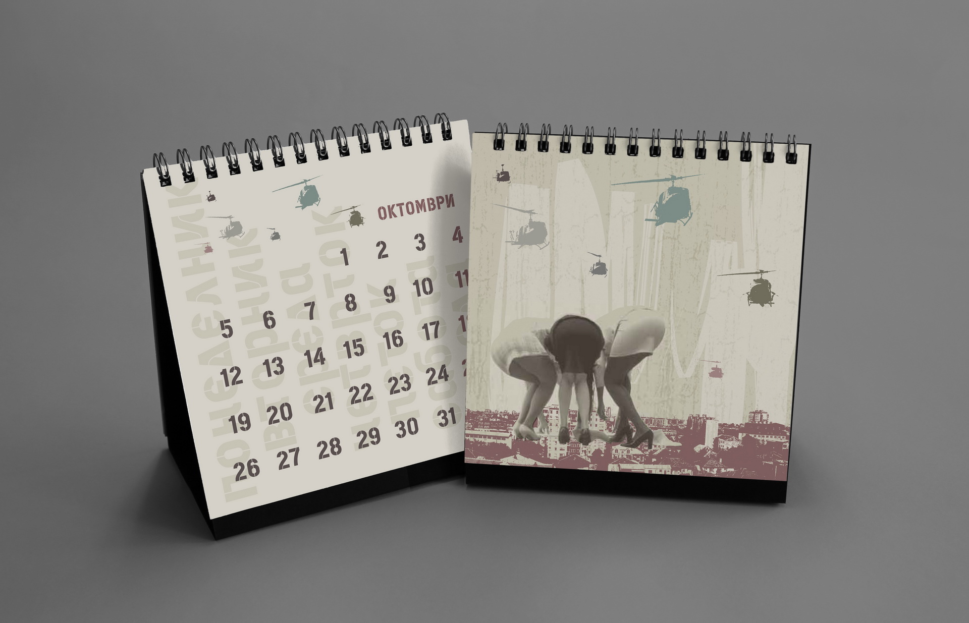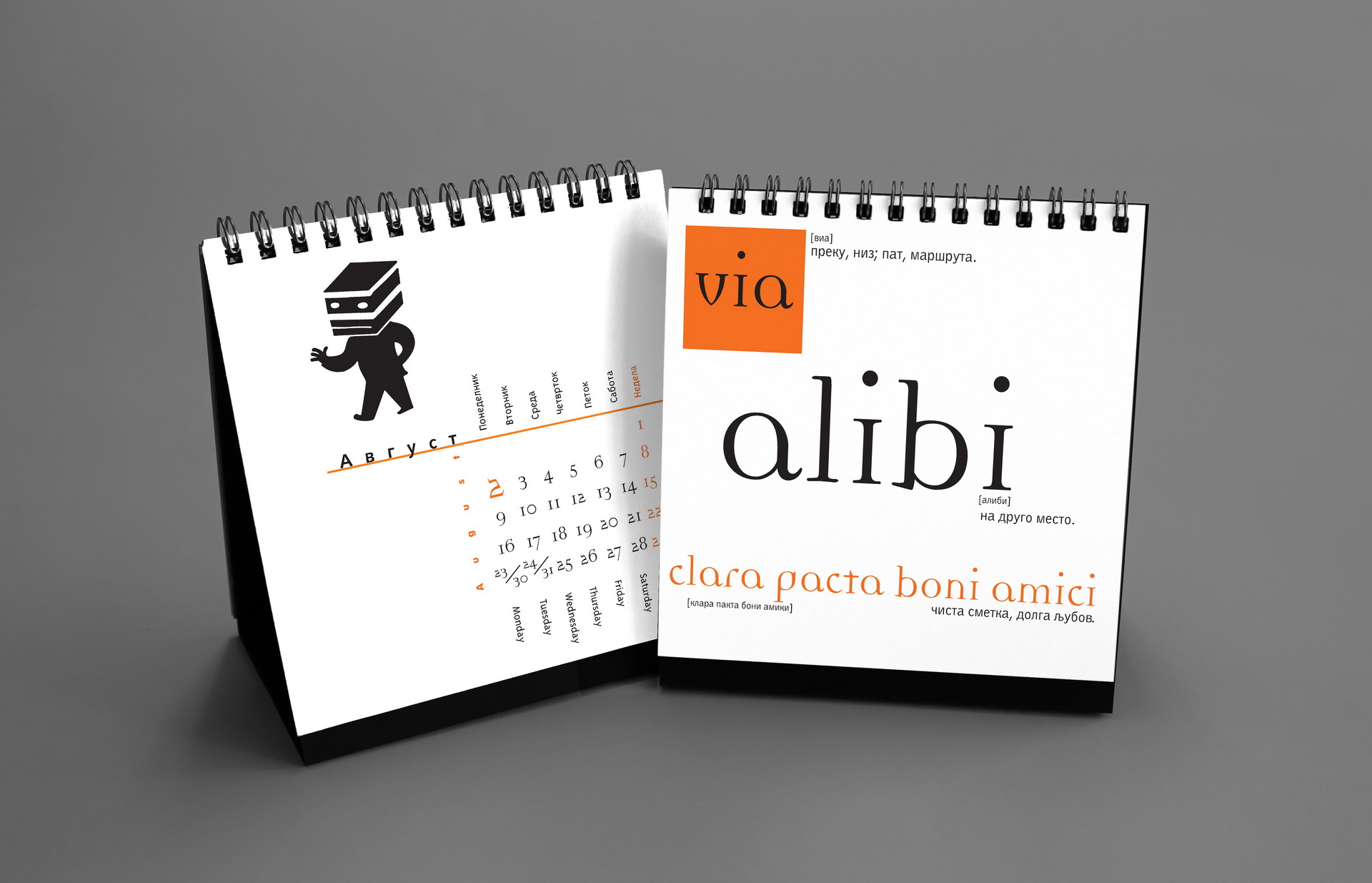 The 2016 calendar paid tribute to the anonymous typographers and sign painters who shaped the visual language of the city in past decades. The design assembled collages of photographed street signs, shopfront lettering, institutional plaques and directional boards collected across Macedonia. Rendered in a restrained duotone black-blue palette, the project celebrated the raw typography of everyday urban culture and preserved fragments of a disappearing visual heritage.