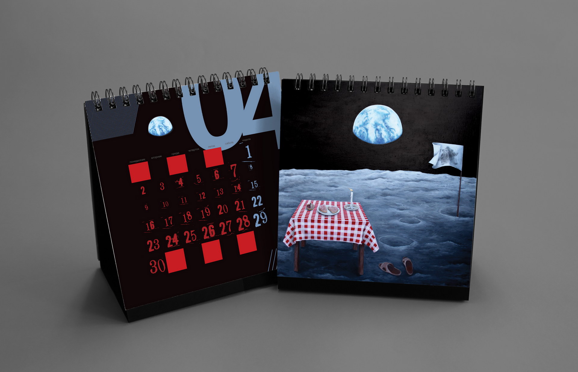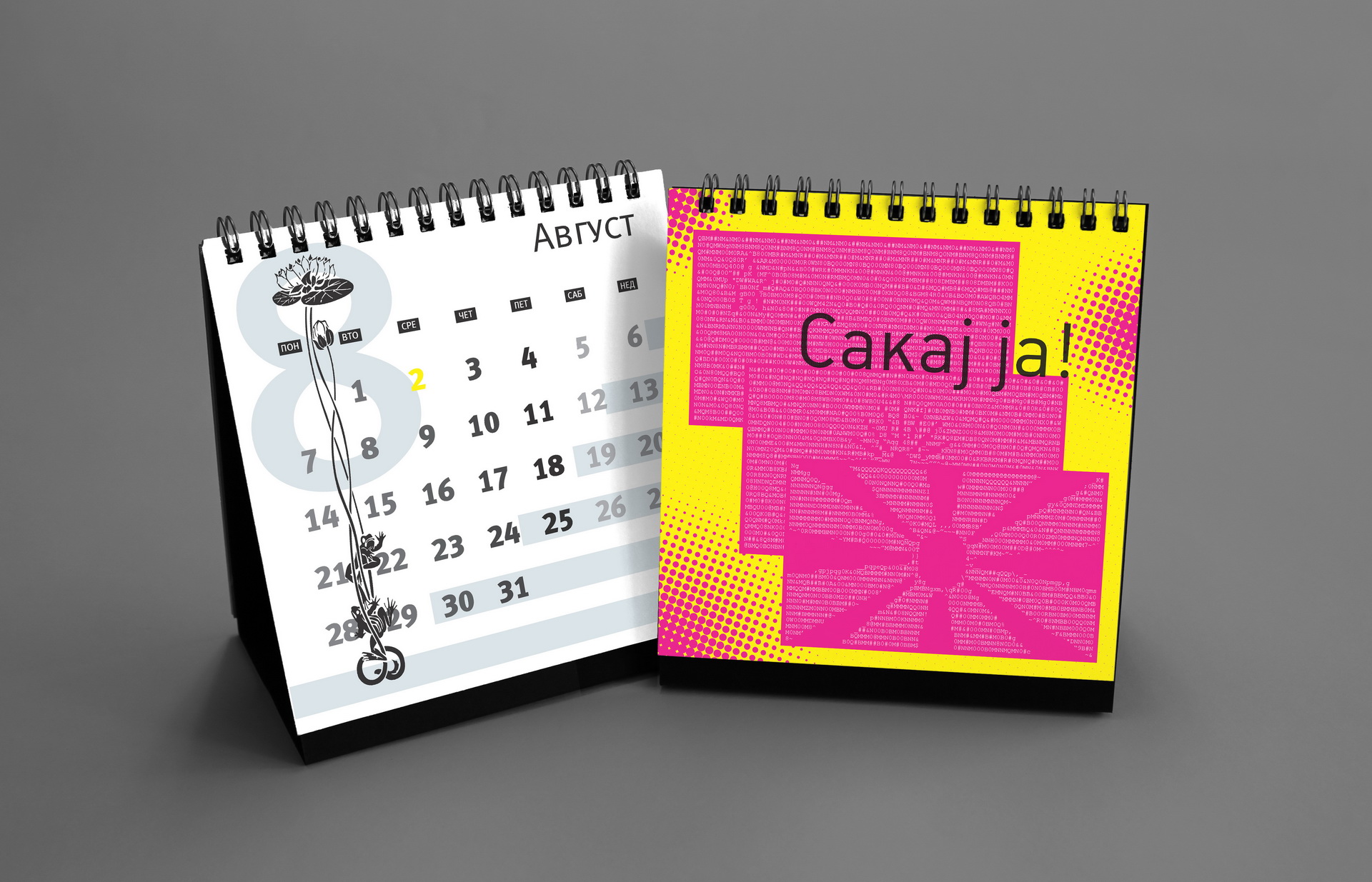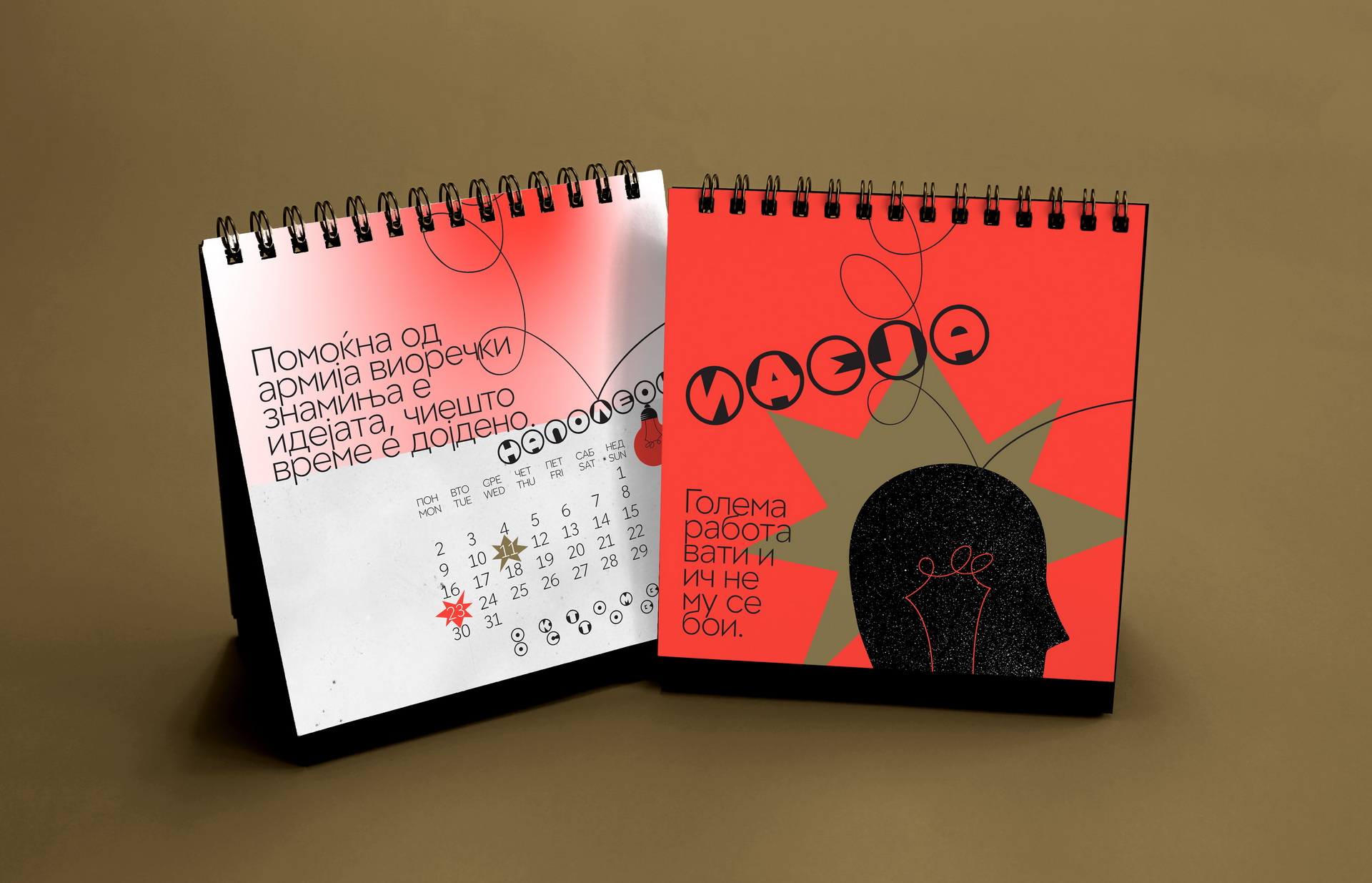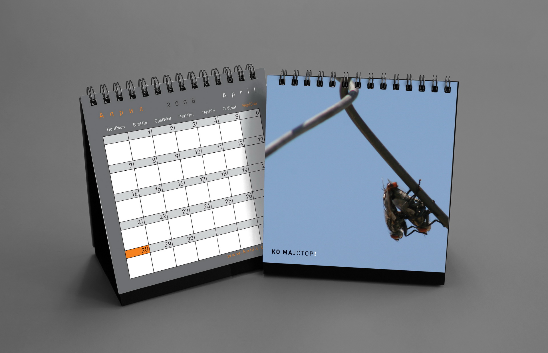 Created to mark 15 years of KOMA Design Studio, this edition played with the double meaning of the studio name as both identity and mechanism. The concept revolved around twelve wordplays derived from “KO MA”, forming a system of playful linguistic constructs. The calendar featured a minimalist geometric calendarium paired with strong photographic compositions, balancing precision and expressive visual storytelling.