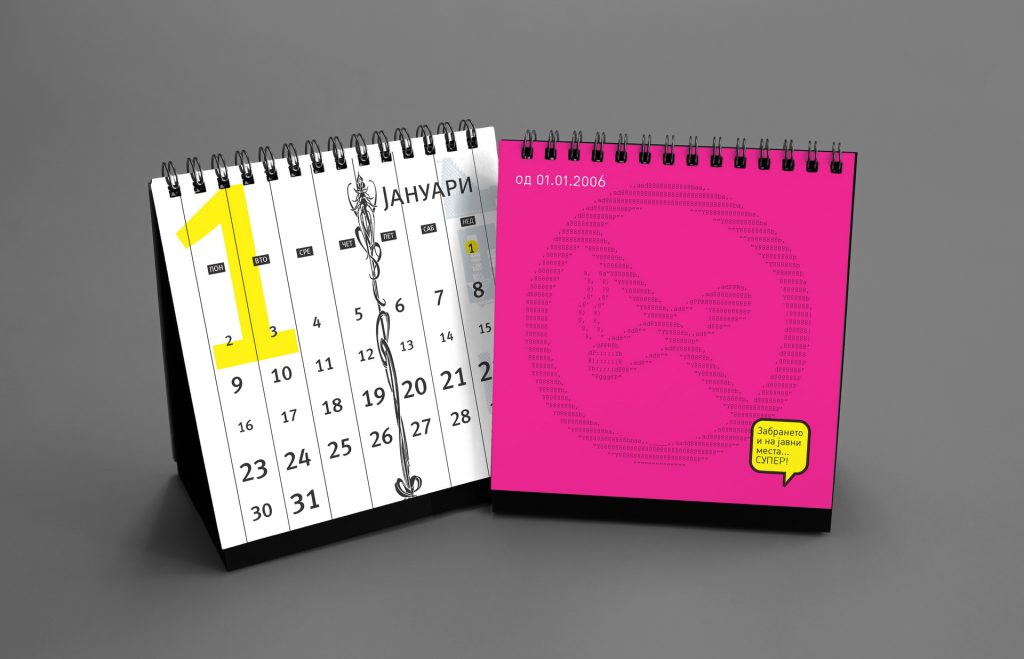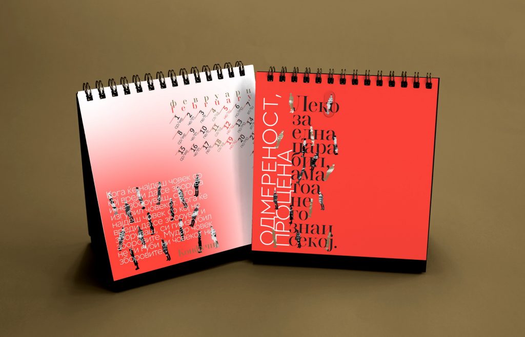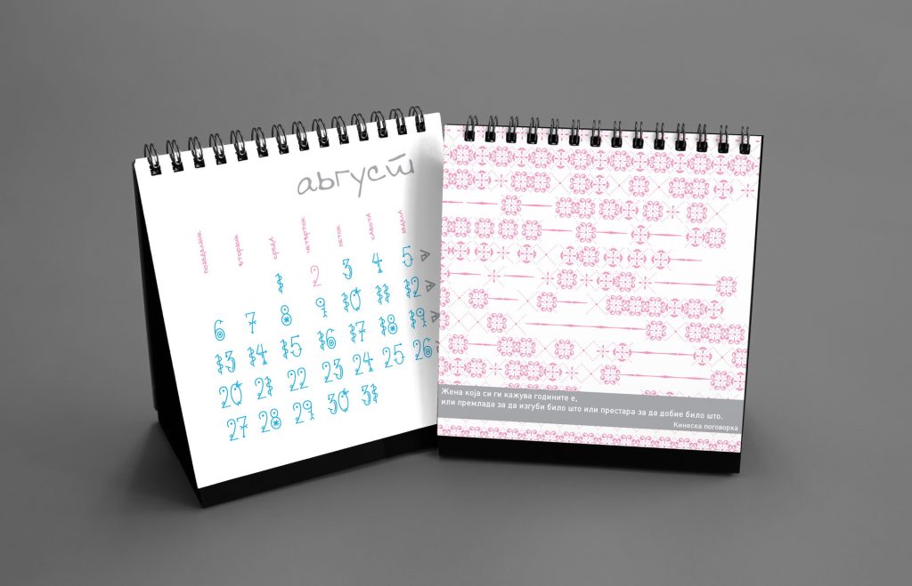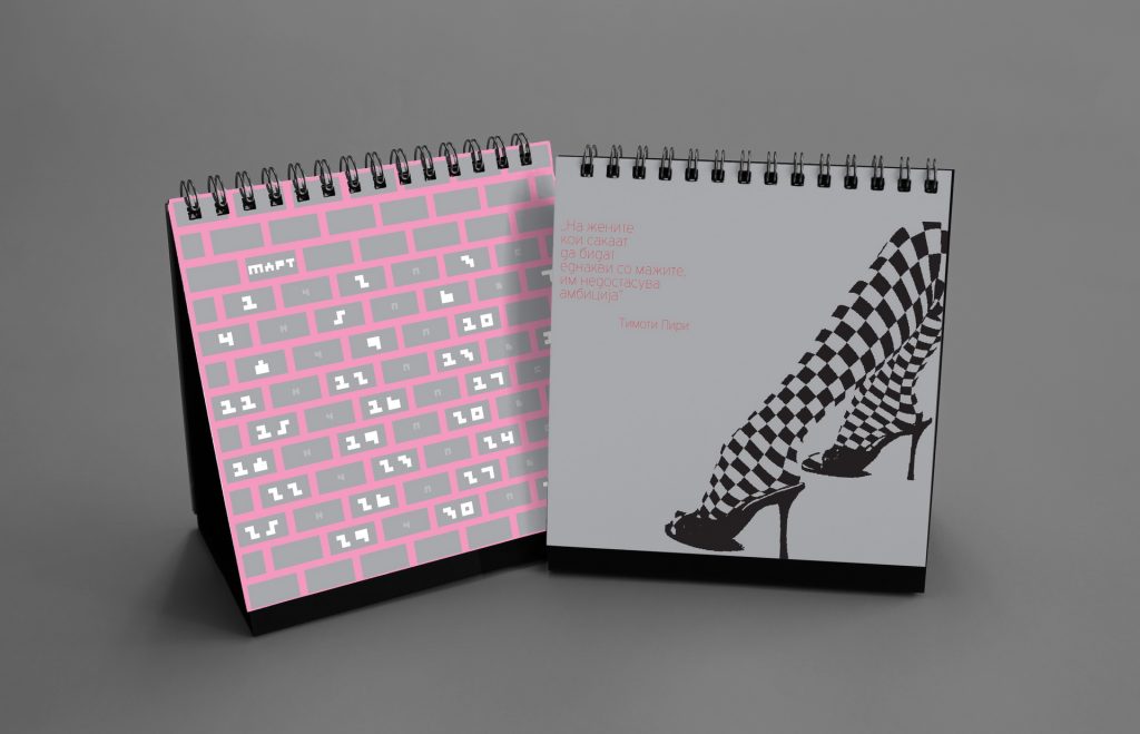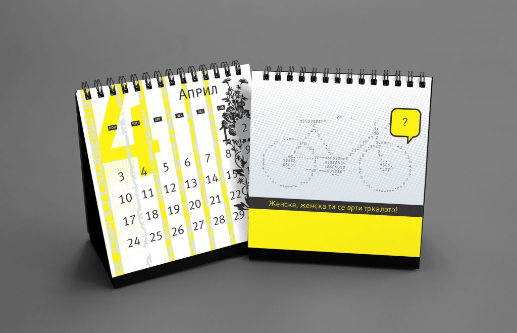 The 2019 calendar focused on raising awareness of women’s strength, solidarity and social presence through a series of positive, empowering messages. The visual language was built around minimal line illustrations by Dušica Dimitrovska Gajdovska, all drawn with a single continuous stroke weight, creating a clean and expressive graphic style. Some illustrations subtly referenced iconic design imagery where women appear as central, active figures.