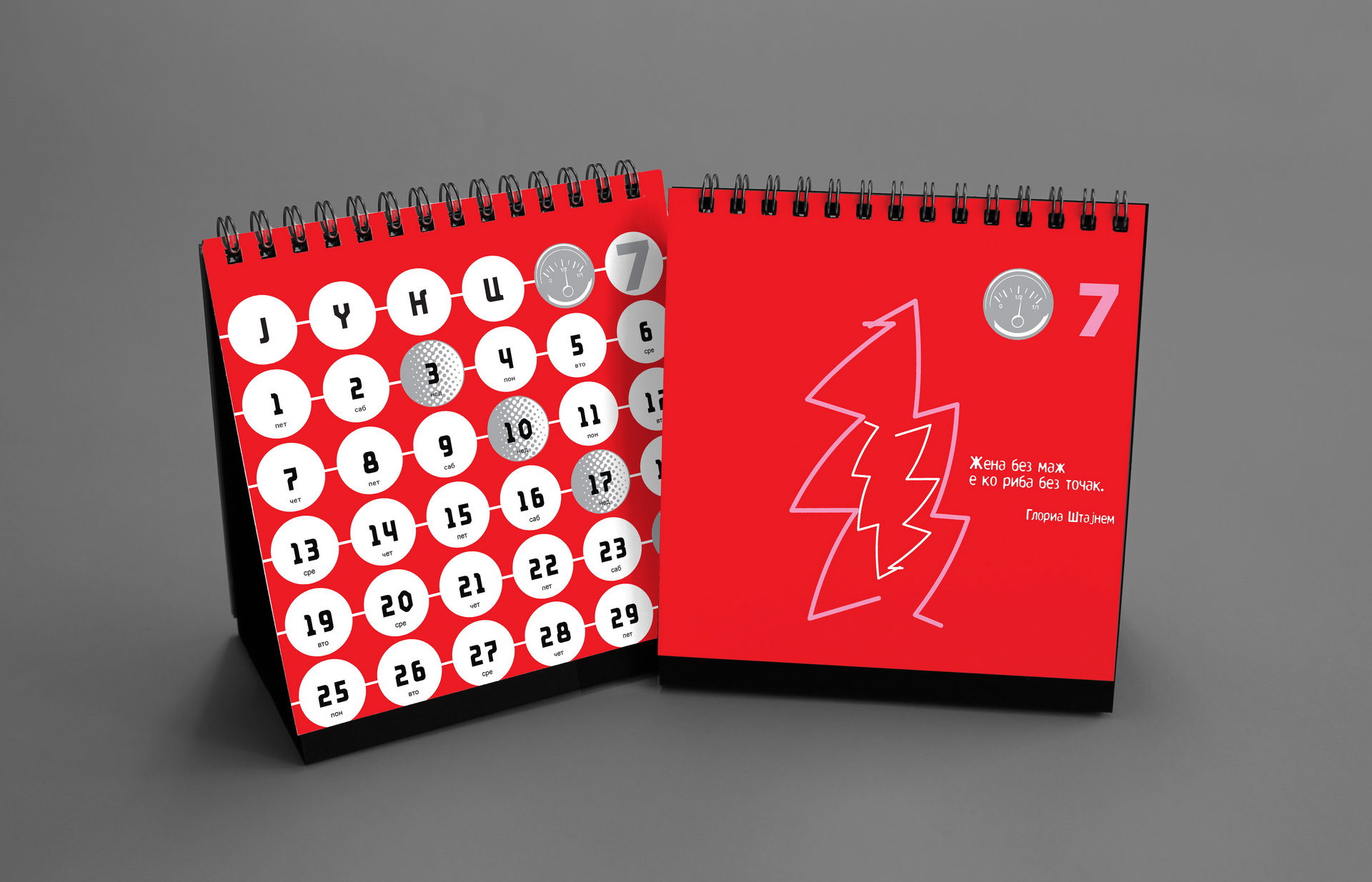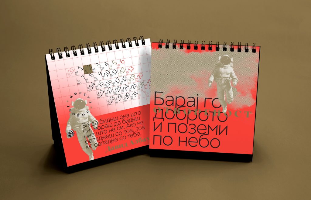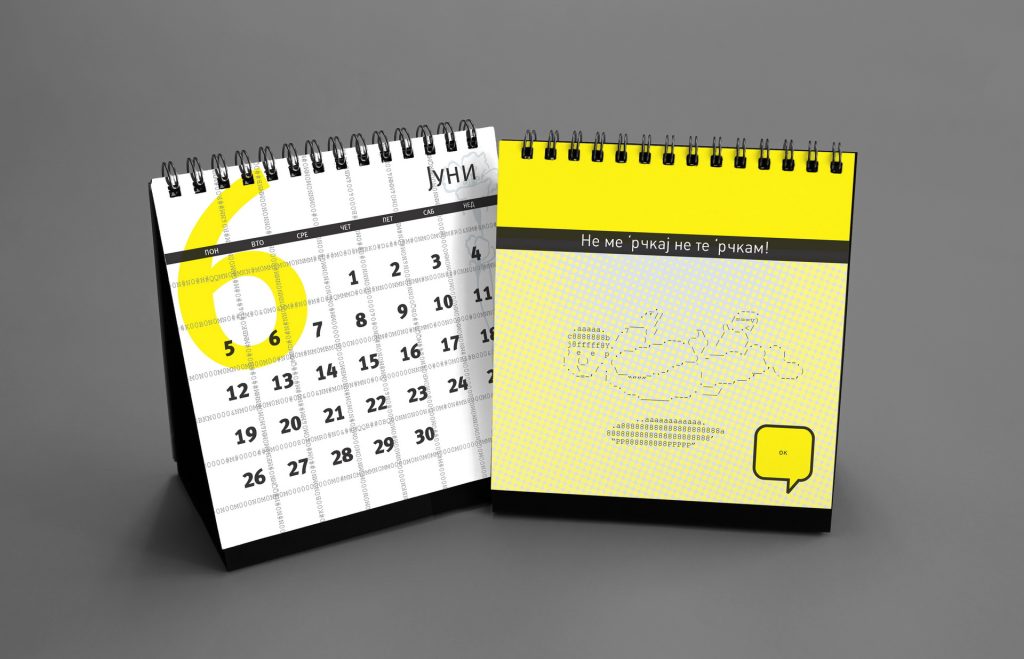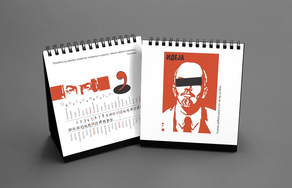 The 2019 calendar focused on raising awareness of women’s strength, solidarity and social presence through a series of positive, empowering messages. The visual language was built around minimal line illustrations by Dušica Dimitrovska Gajdovska, all drawn with a single continuous stroke weight, creating a clean and expressive graphic style. Some illustrations subtly referenced iconic design imagery where women appear as central, active figures.