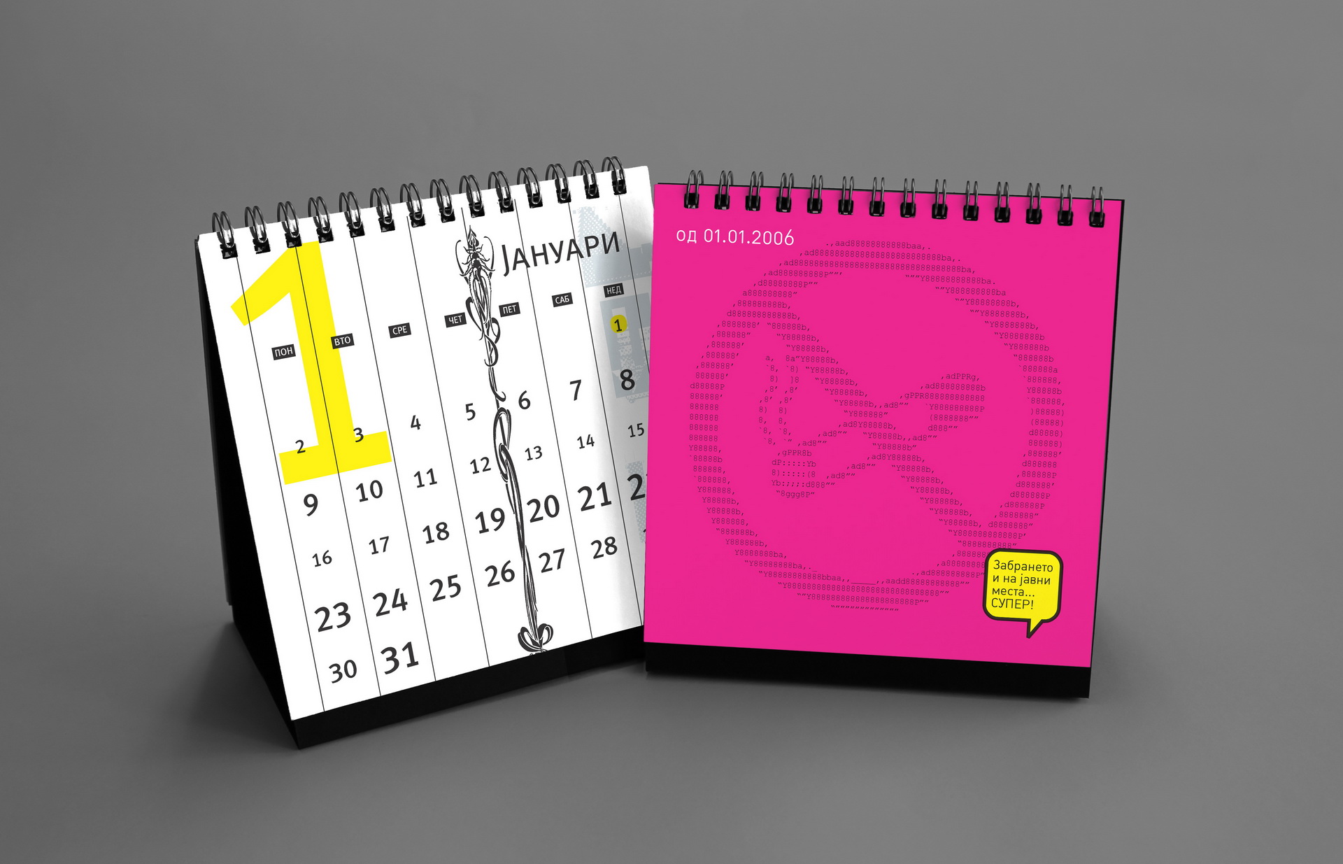 The 2006 edition explored playful Macedonian slang expressions through a visually unconventional approach. The design combined ASCII art structures with flowing vector floral elements, creating a contrast between digital rigidity and ornamental softness while celebrating everyday language and local humor.