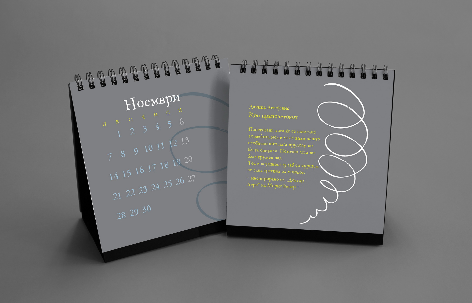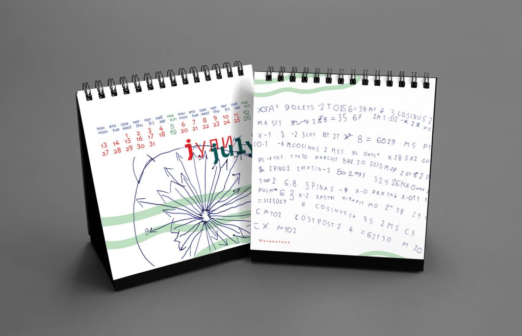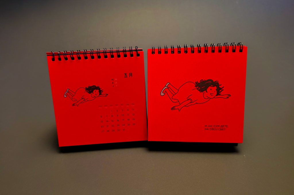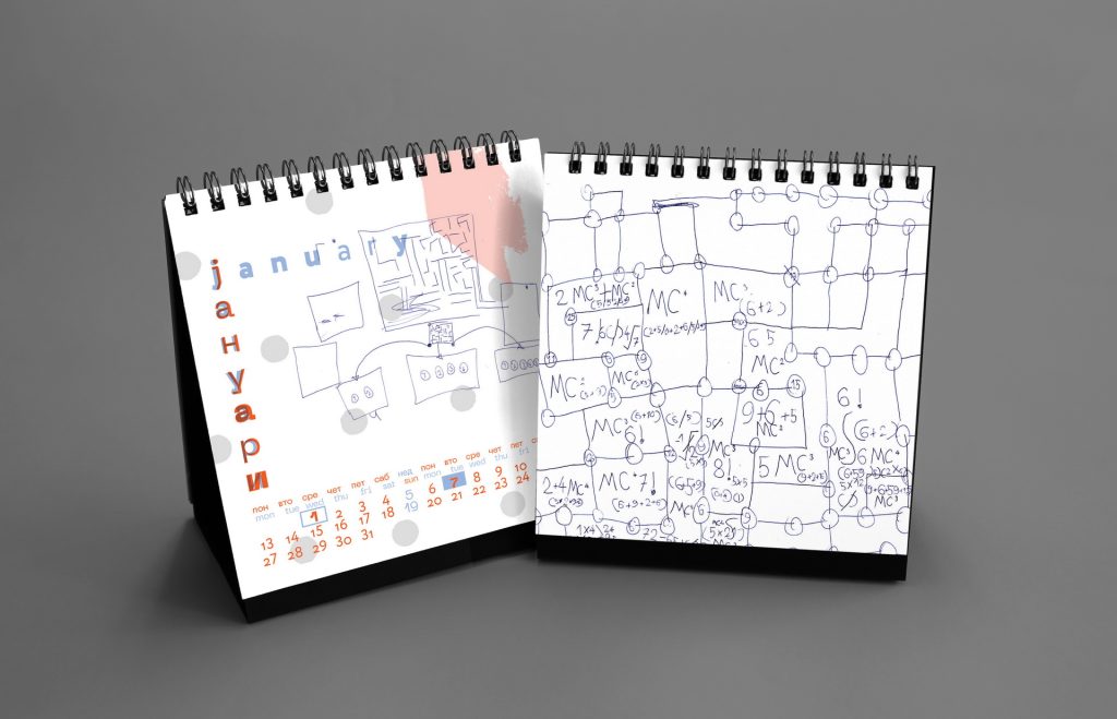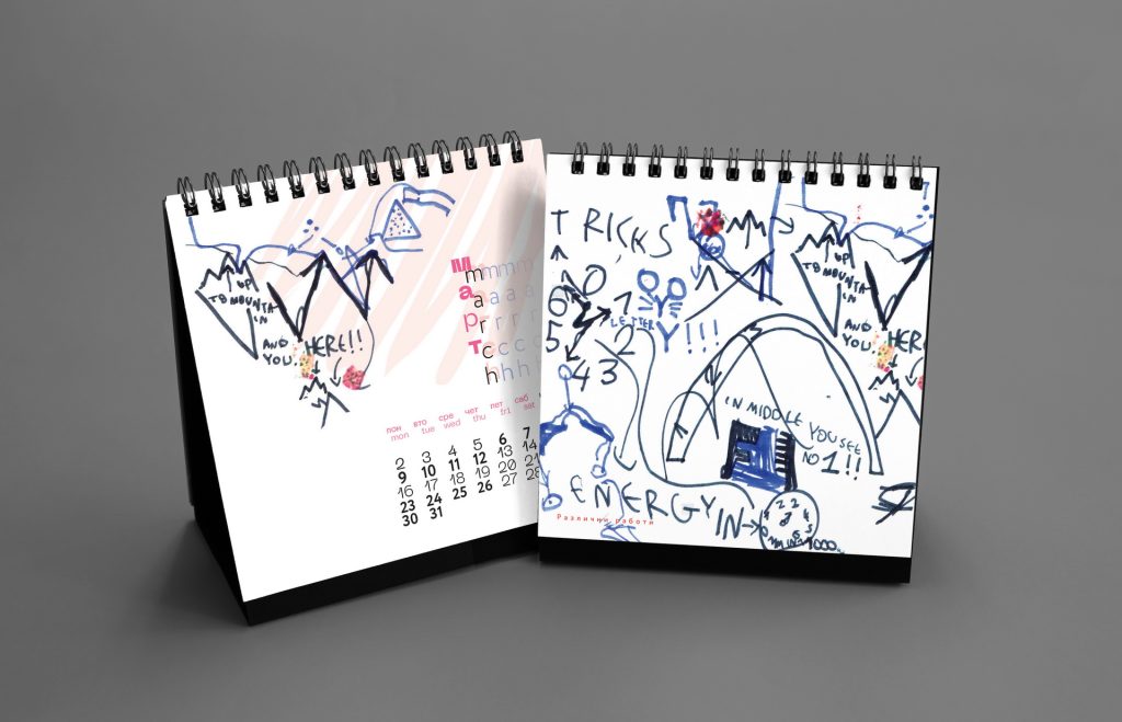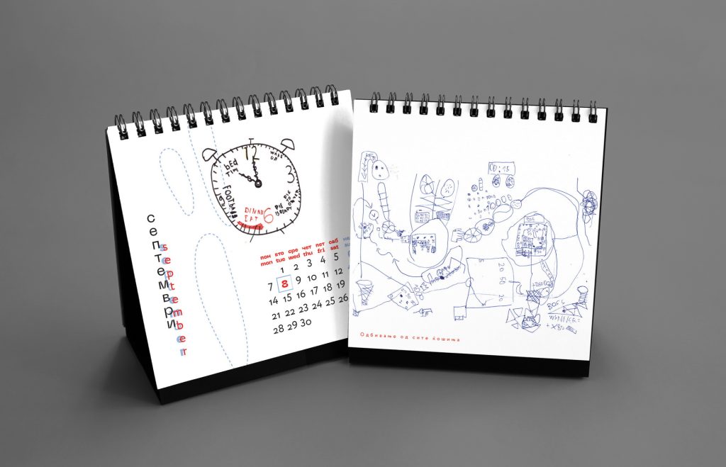 The design remained intentionally minimal, allowing Nikola’s spontaneous drawings to become the central visual element of the calendar.