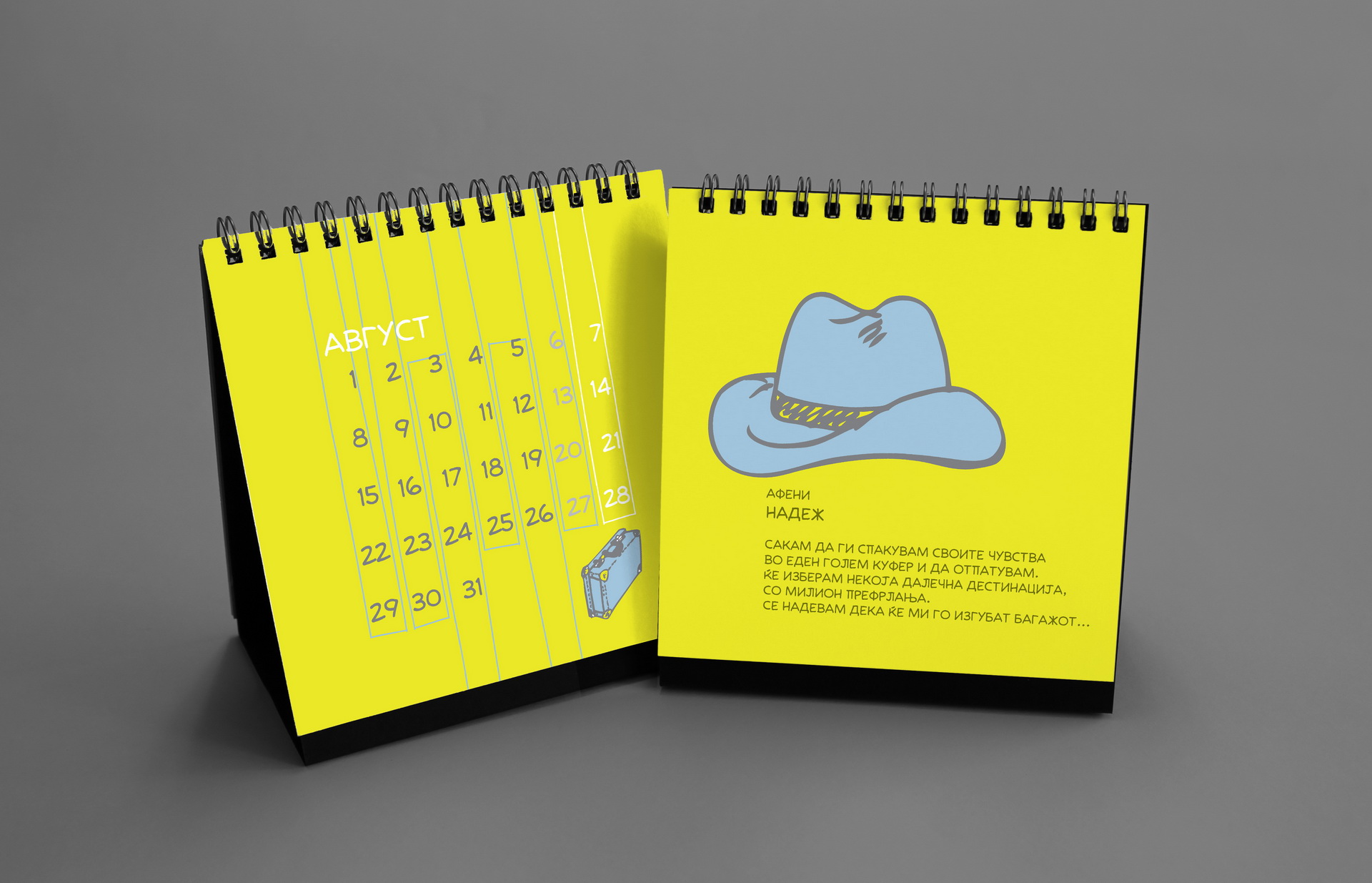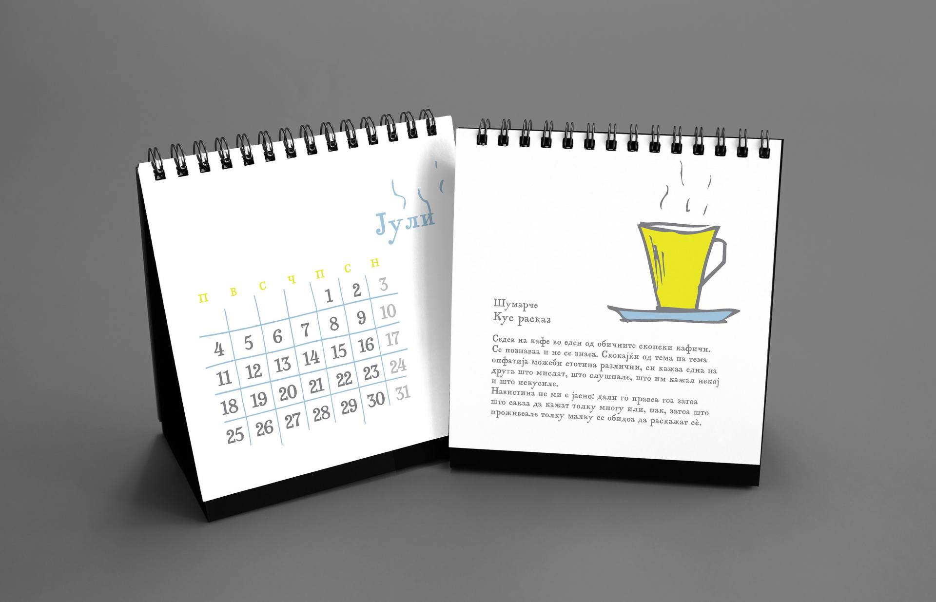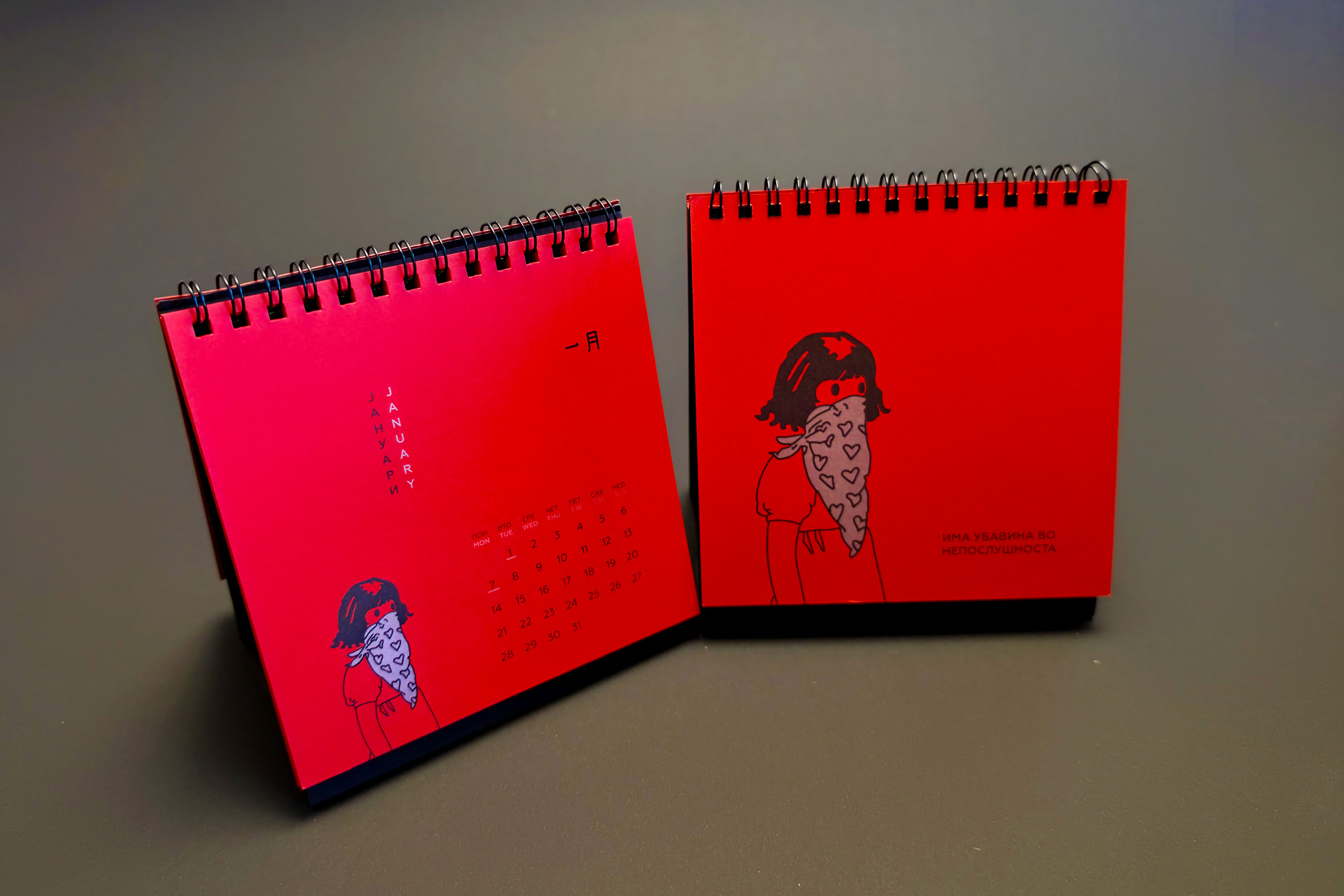 The design remained intentionally minimal, allowing Nikola’s spontaneous drawings to become the central visual element of the calendar.