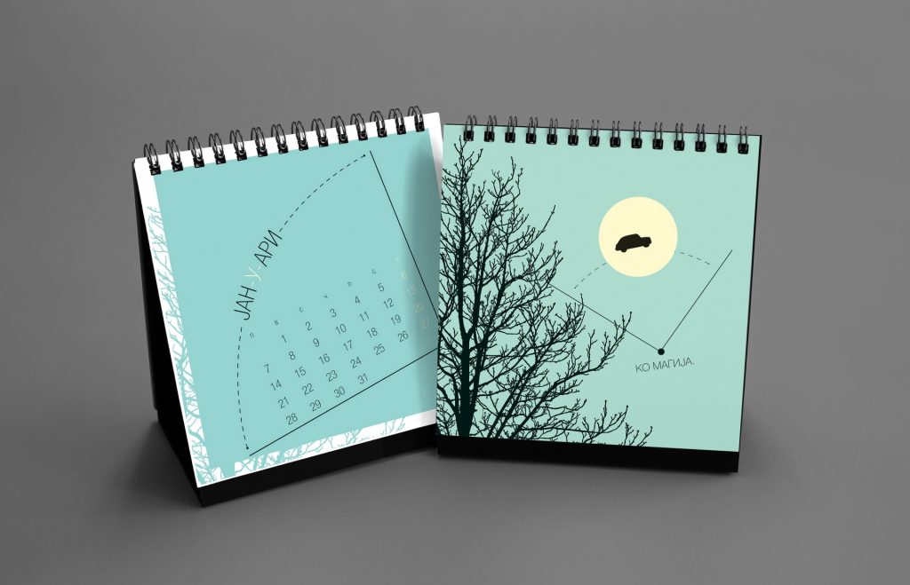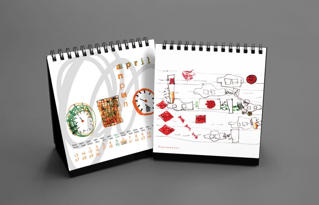 The 2020 calendar featured drawings by Nikola Josifoski, created between 2016 and 2019 when he was just seven years old. Fascinated by old Skopje, vintage cars, speedometers and planets, Nikola fills his notebooks with energetic sketches and imaginative diagrams. His favorite cars include the Honda Civic from the 1990s, Ferrari 308 GTS, Zastava 750 and the classic Chevrolet Bel Air, while his dream car is an Audi R8.