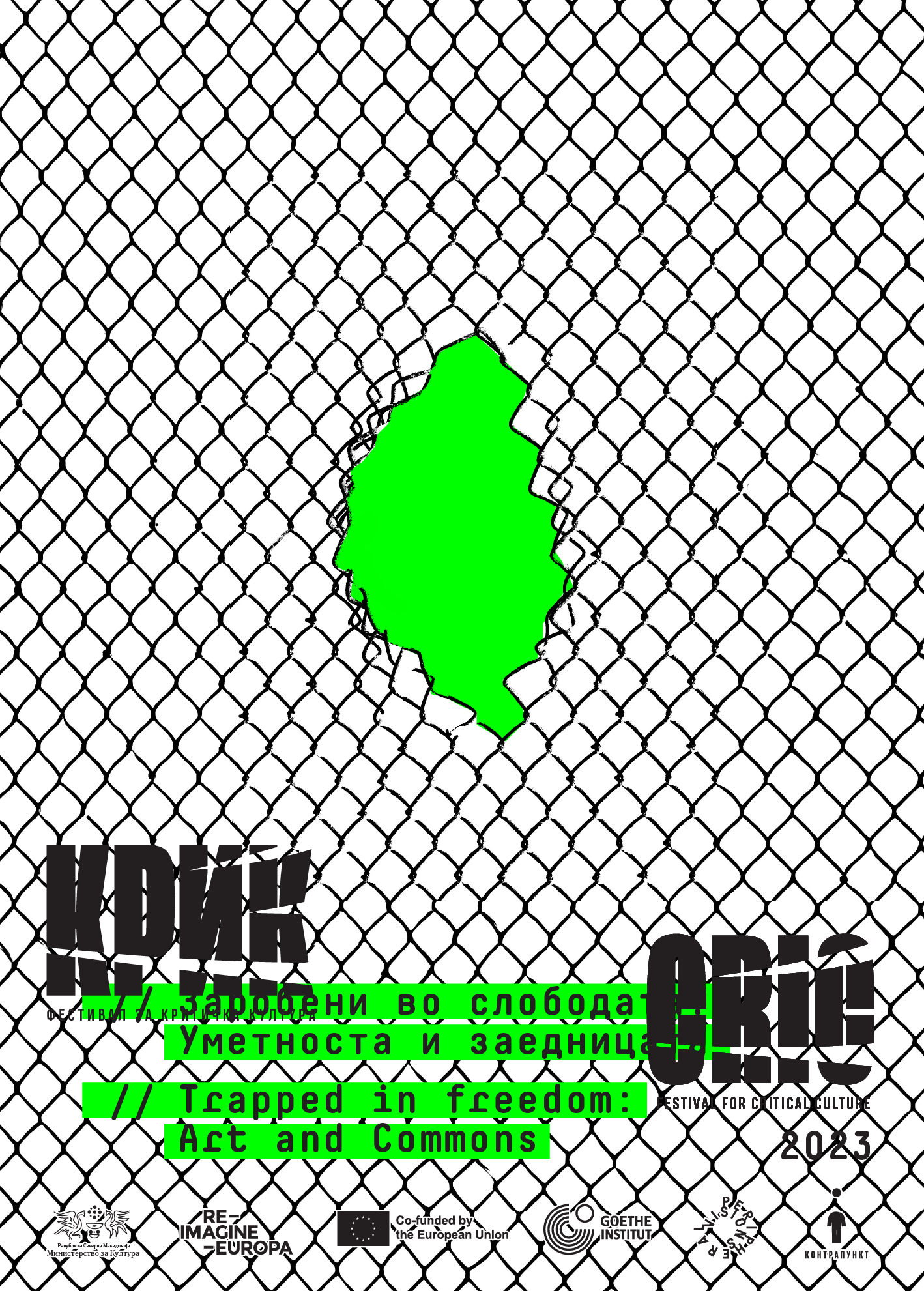 KRIK 08 — Trapped in Freedom (2023) explored the paradox of freedom within institutional and social systems. The visual language used stark metaphors of confinement and rupture to question how “free time” and civic agency are shaped by power structures.